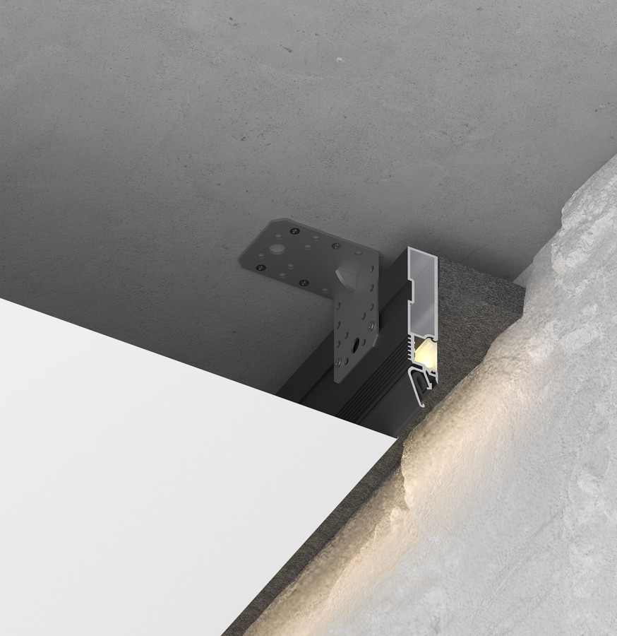 GRID 85 — конструкционные профили для профессиональных интерьерных решений. Используются для формирования карнизных ниш и служат в качестве парящего профиля на сложных участках.