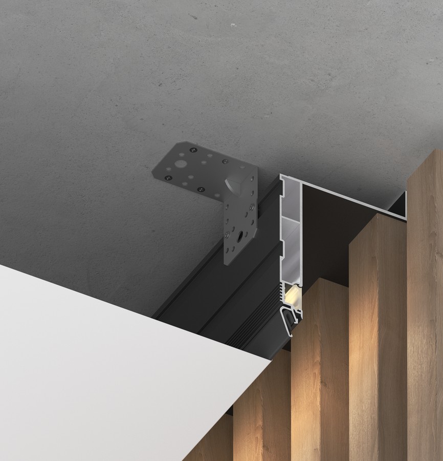 GRID 115 — конструкционные профили для профессиональных интерьерных решений. Используются для формирования карнизных ниш и служат в качестве парящего профиля на сложных участках.