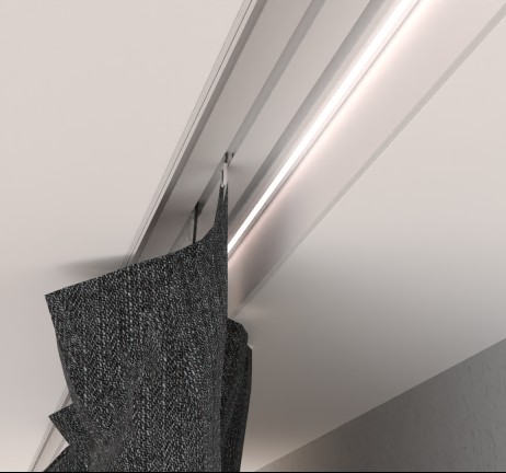Профиль для изготовления ниш под карниз потолочного крепления с местом крепления штор с подсветкой.